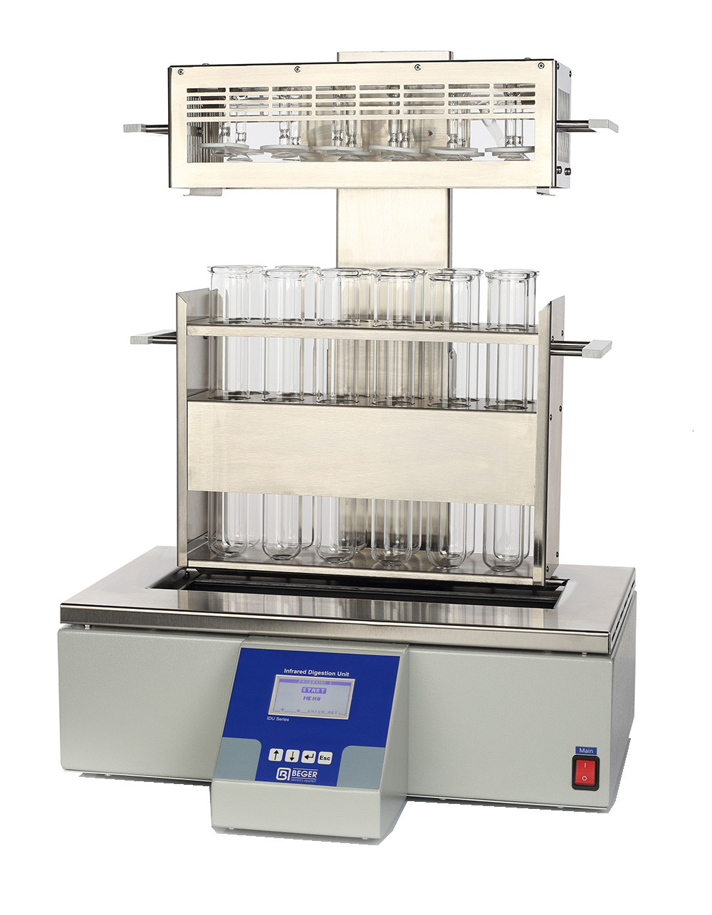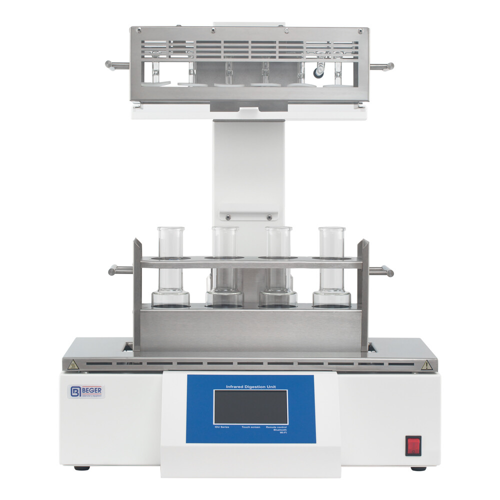 Установка для гидролиза компании BEGER предназначена для пробоподготовки образцов при определении жира в пищевых продуктах и кормах. Для качественного результата при анализе жира необходима пробоподготовка, включающая в себя гидролизацию исследуемого образца. Установка HYDRO одновременно проводит гидролиз 4 или 6 образцов.