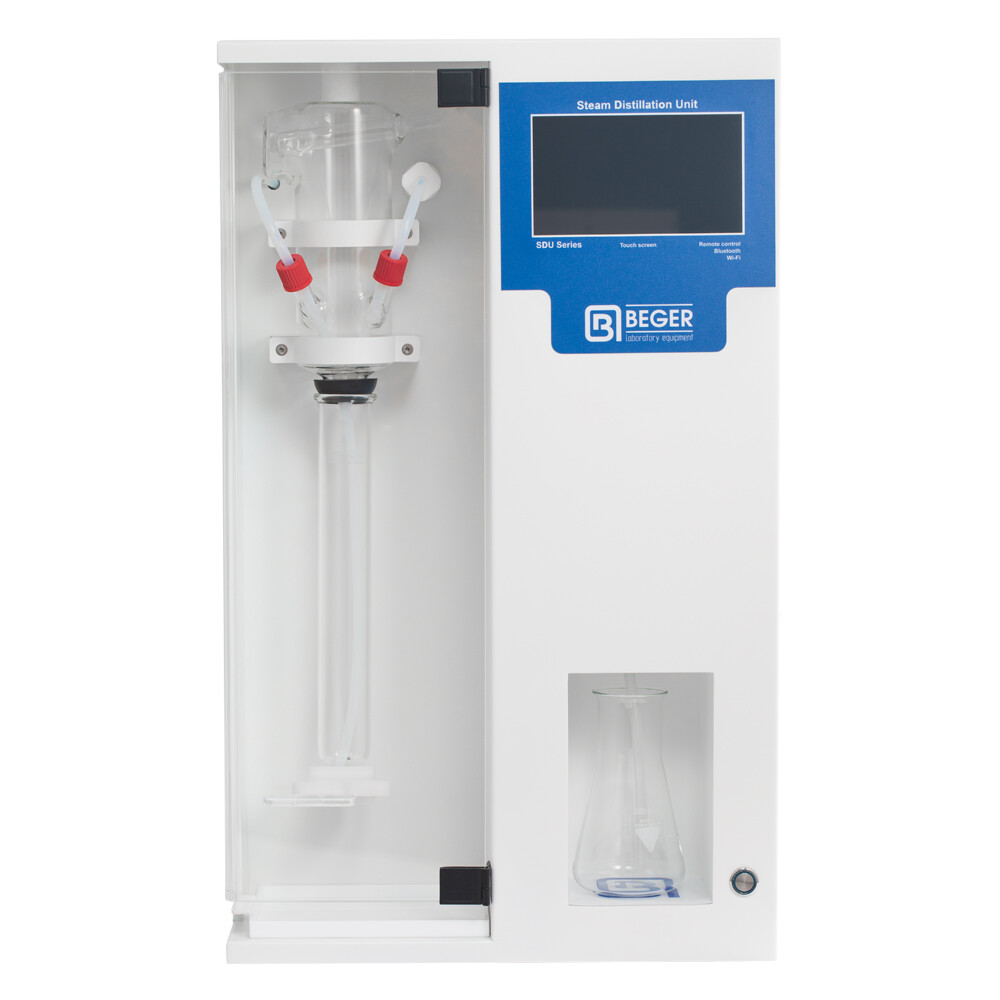 Простая и удобная модель парового дистиллятора для перегонки проб, прошедших озоление. Функция автоматического добавления щелочи. Оснащен контроллером нового поколения на базе микрокомпьютера с 7 дюймовым полноцветным дисплеем и емкостным сенсором Multi Touch Screen. Звуковое оповещение при завершении работы заданной программы. Адаптивность и свойства прибора задают необходимые параметры исходя из методик и стандартов анализируемого продукта. В базовой комплектации меню на английском, испанском, русском и французском языках. Дополнительно возможно добавить в меню другой язык (опция). Режим экономии энергии (стоп-пуск) между циклами перегонки. SDU получил новую систему тестирования и удаленного контроля, что увеличивает надежность работы, уровень безопасности и облегчает сервис, позволяя проверить работу прибора и провести диагностику в любой точке мира, а также обновить ПО.
